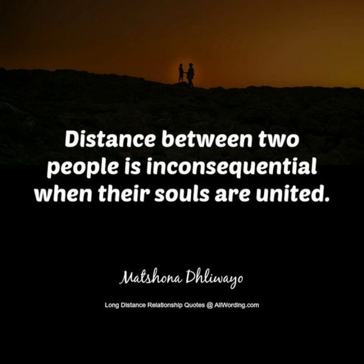 10) “Distance between two people is inconsequential when their souls are united.” – Matshona Dhliwayo
