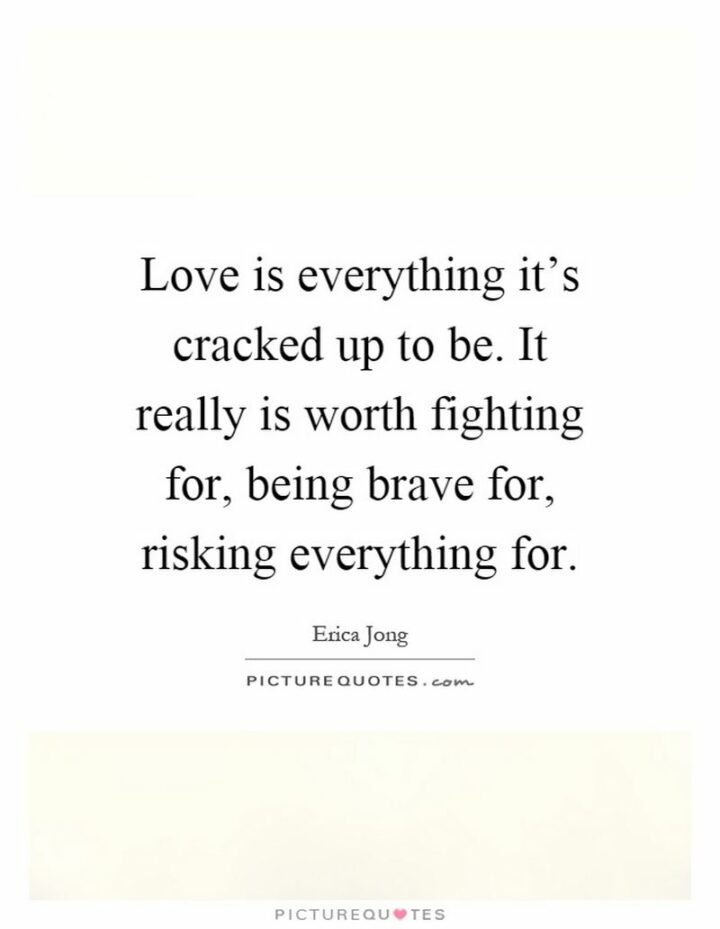 30) “Love is everything it’s cracked up to be. It really is worth fighting for, being brave for, risking everything for.” – Erica Jong