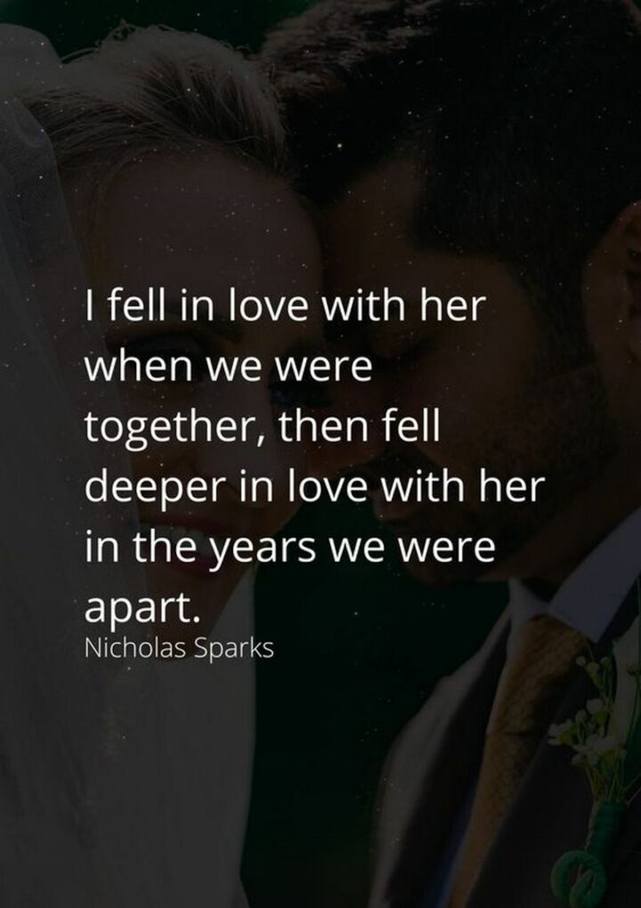 33) “I fell in love with her when we were together, then fell deeper in love with her in the years we were apart.” – Nicholas Sparks, Dear John