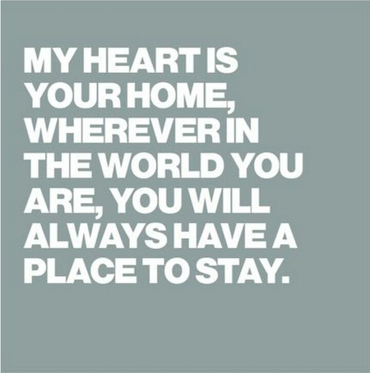 50) “My heart is your home, wherever in the world you are – you will always have a place to stay.” – K.A. Hill