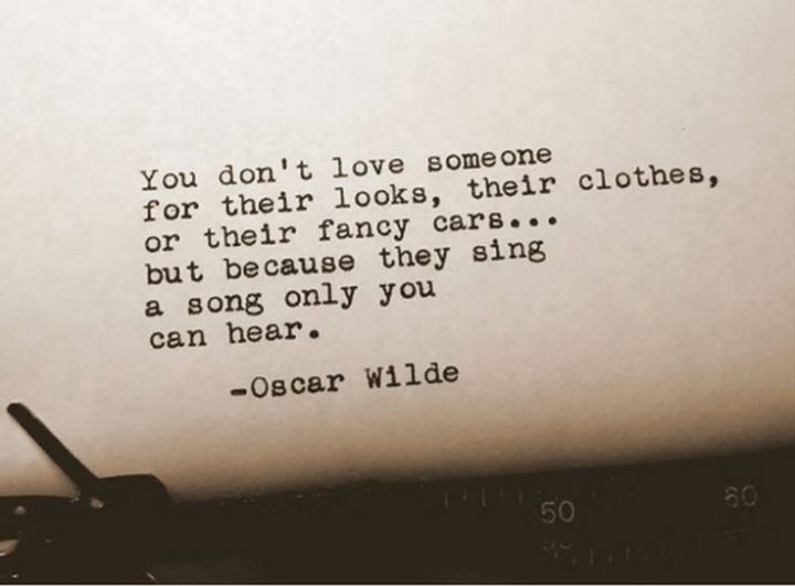 “You don’t love someone for their looks, their clothes, or their fancy cars…but because they sing a song only you can hear.” – Oscar Wilde