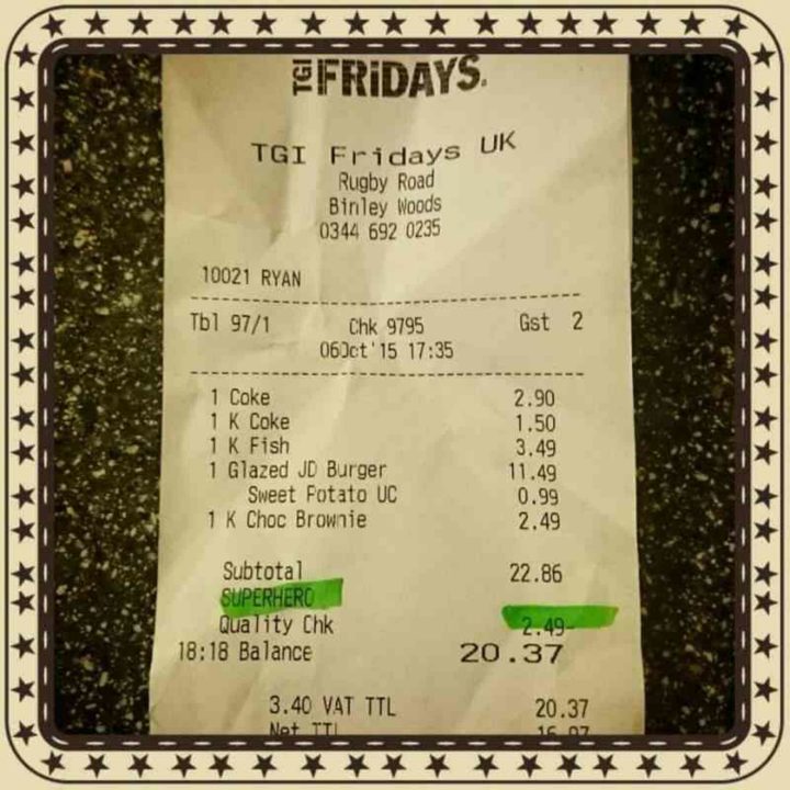When his mother asked why they were so kind to her son, the server replied ‘because he’s a superhero!” His mother was speechless when she received the bill and her son was given a ‘superhero’ discount so his dessert was free.