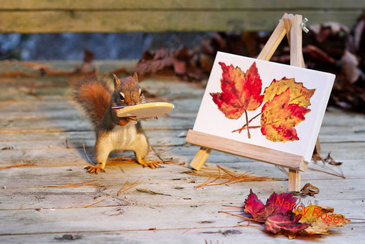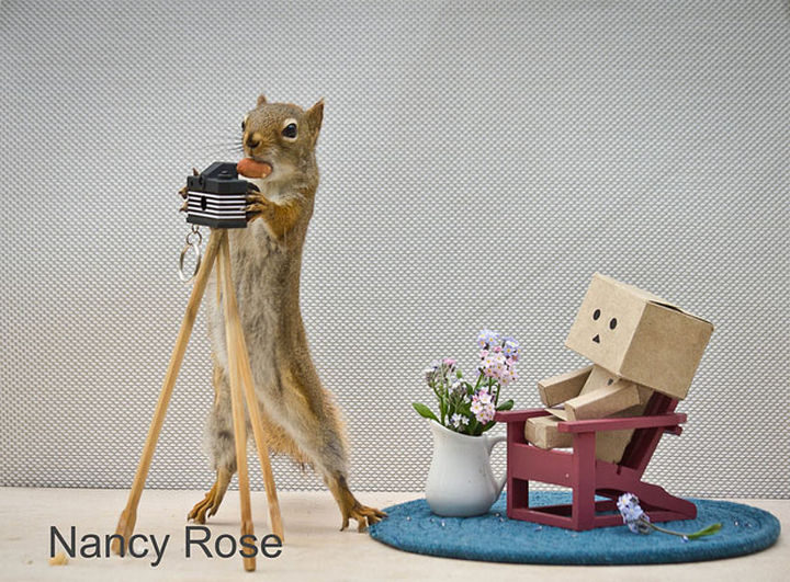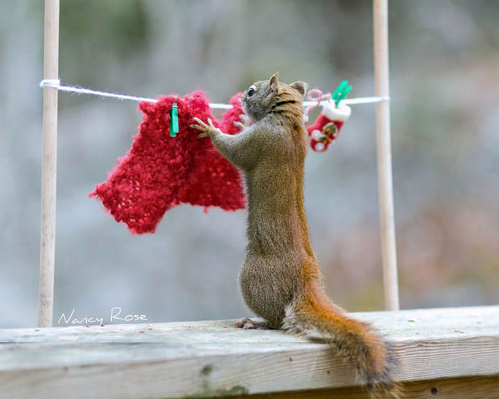 Author and Photographer Nancy Rose is a resident of Nova Scotia, Canada, and she also had a friendly visitor that would raid her bird feeders on a daily basis for seeds and nuts. She decided to grab her camera one day and based on how she gets squirrels in the cutest poses, you could almost say she’s a squirrel whisperer too!