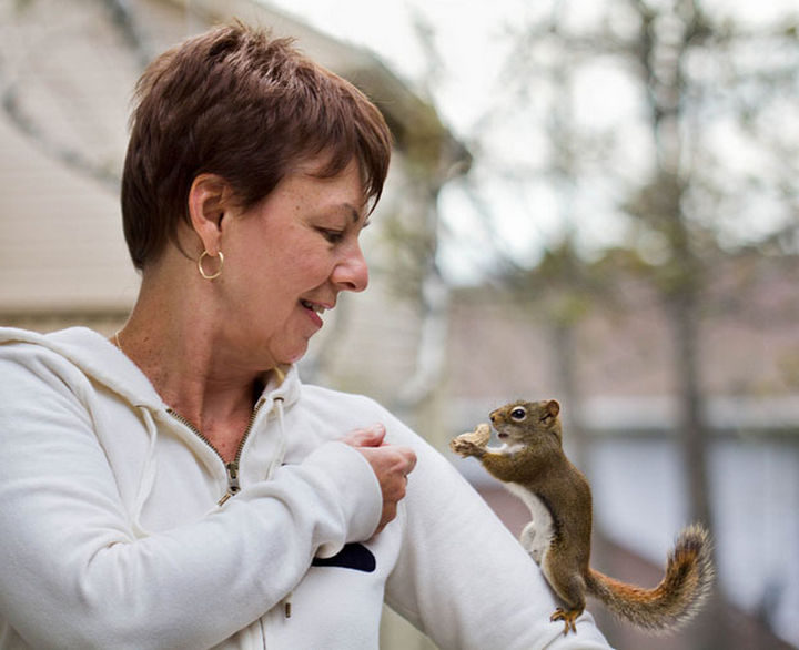 Author and Photographer Nancy Rose captures incredible moments with her friendly backyard squirrel she adorably calls “Mr. Peanuts.”