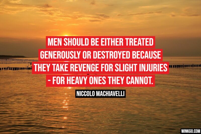 20) “Men should be either treated generously or destroyed because they take revenge for slight injuries – for heavy ones they cannot.” – Niccolo Machiavelli
