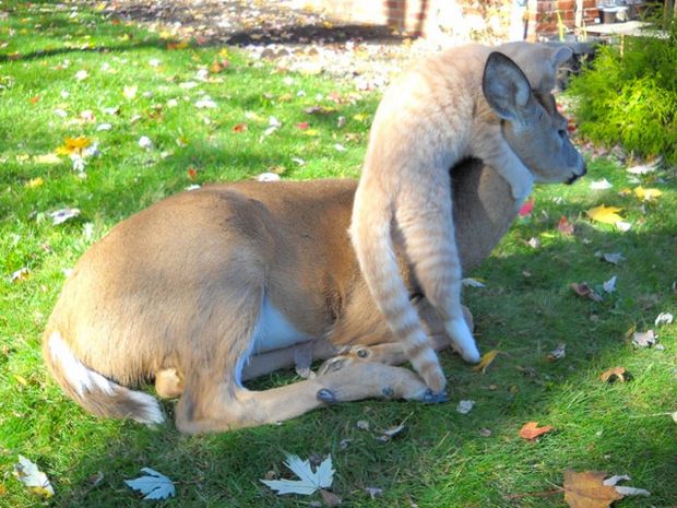 Have you ever had a close encounter of the wild kind? Well, one cat owner in Harrisburg, Pennsylvania noticed that their cat would wander outside almost every morning. Out of curiosity, the owner decided to follow the cat one morning and found that their cat befriended a deer who would visit their cat every morning to play.