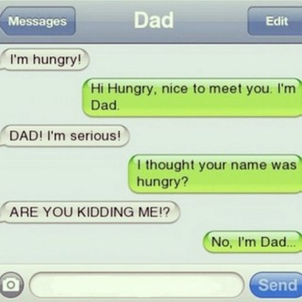 Funny texts from parents: “I’m hungry! Hi Hungry, nice to meet you. I’m Dad. DAD! I’m serious! I thought your name was hungry? ARE YOU KIDDING ME!? No, I’m Dad.”