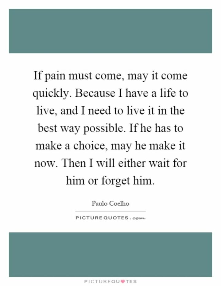 30) “If pain must come, may it come quickly. Because I have a life to live, and I need to live it in the best way possible. If he has to make a choice, may he make it now. Then I will either wait for him or forget him.”