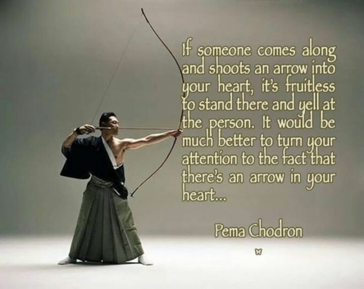 15) “If someone comes along and shoots an arrow into your heart, it’s fruitless to stand there and yell at the person. It would be much better to turn your attention to the fact that there’s an arrow in your heart…” – Pema Chödrön