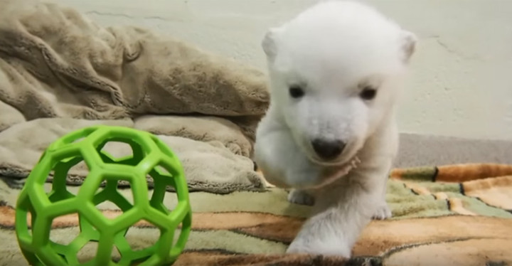 Watch a Toronto Zoo female 2-month-old polar bear cub nicknamed ‘Juno’ take her first steps…