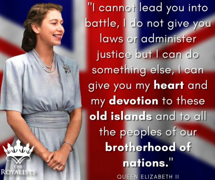 10) “I cannot lead you into battle, I do not give you laws or administer justice but I can do something else, I can give you my heart and my devotion to these old islands and to all the peoples of our brotherhood of nations.”