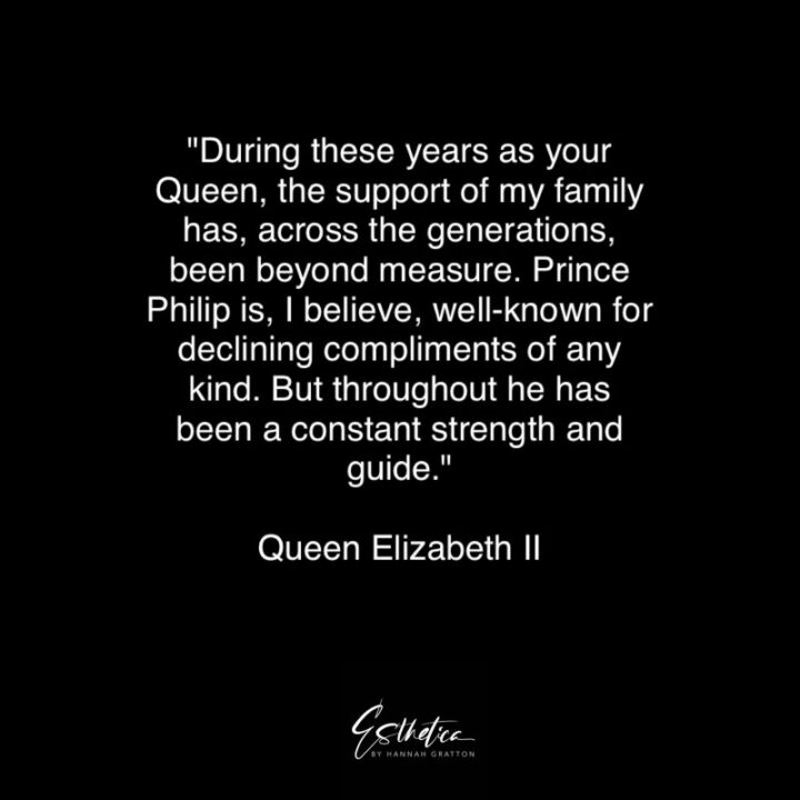 20) “Prince Philip is, I believe, well-known for declining compliments of any kind. But throughout he has been a constant strength and guide.”