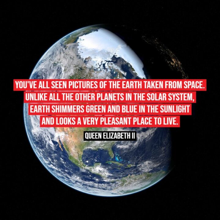 1) “You’ve all seen pictures of the earth taken from space. Unlike all the other planets in the solar system, earth shimmers green and blue in the sunlight and looks a very pleasant place to live.”