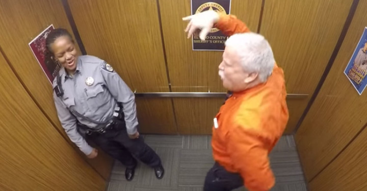 After 29 years of service, Deputy Tony Scherb of the El Paso County Sheriff’s Office recently retired and was on his way home. The elevator was recently retrofitted with a camera to record any malfunctions and when he entered the elevator, it was empty and Silentó’s hit, ‘Watch Me (Whip/Nae Nae)’ was playing in the background.