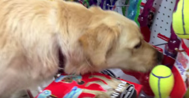 Roo the Rescued Golden Retriever Picks Out a Chew Toy.