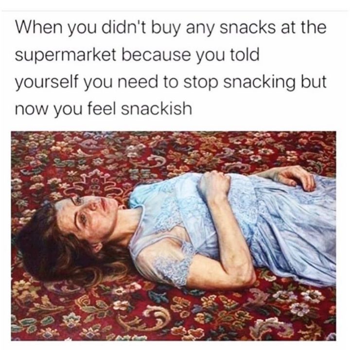 “When you didn’t buy any snacks at the supermarket because you told yourself you need to stop snacking but now you feel snackish.”