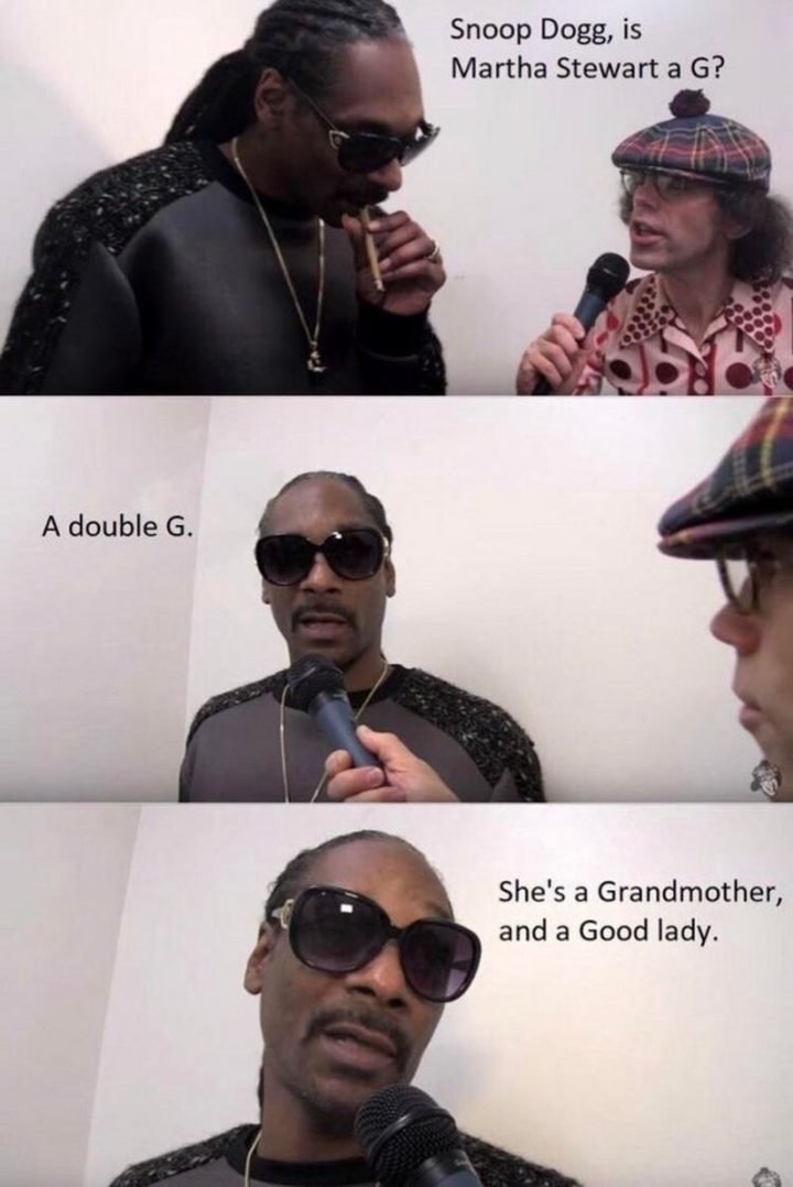 “Snoop Dogg, is Martha Stewart a G? A double G. She’s a grandmother and a good lady.”
