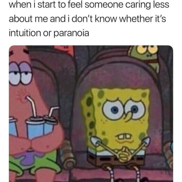 “When I start to feel someone caring less about me and I don’t know whether it’s intuition or paranoia.”