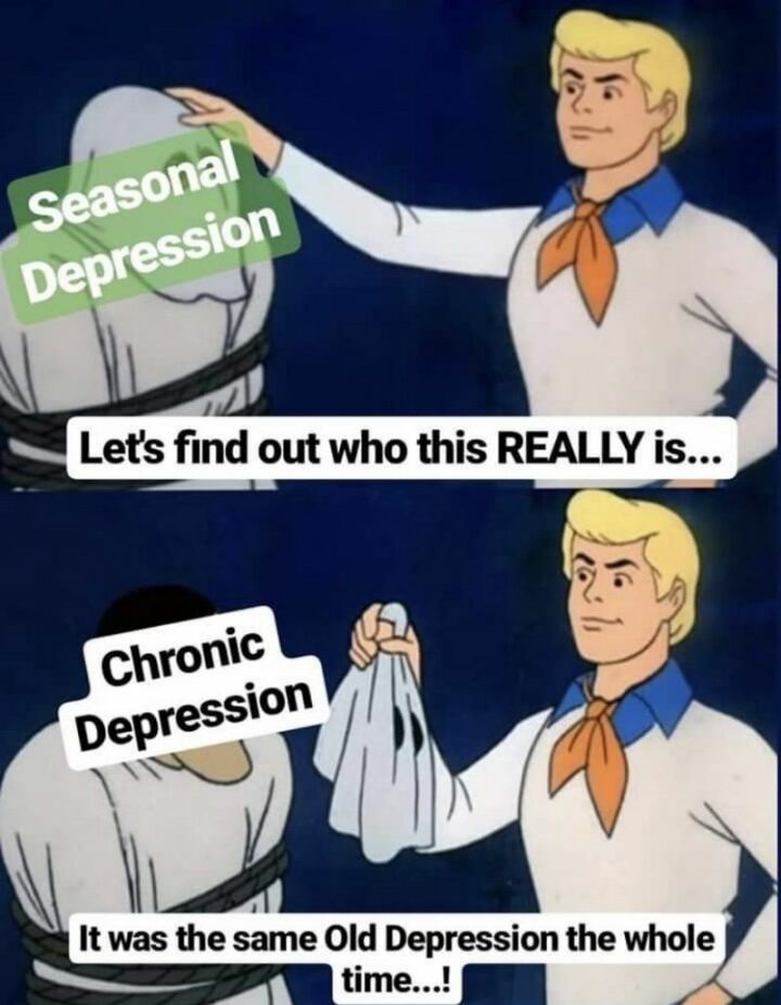 9) “Seasonal depression. Let’s find out who this REALLY is…Chronic depression. It was the same old depression the whole time…!