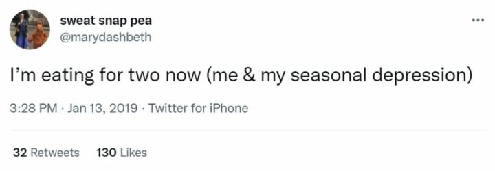 11) “I’m eating for two now (me and my seasonal depression).”