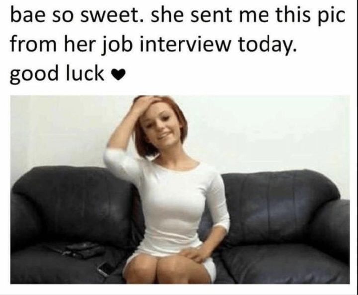 “Bae so sweet. She sent me this pic from her job interview today. Good luck!”