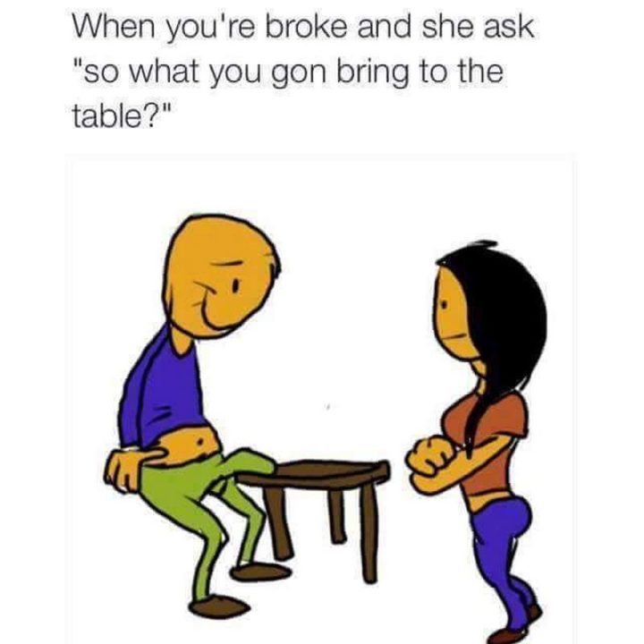 “When you’re broke and she asks ‘So what you gon bring to the table?'”