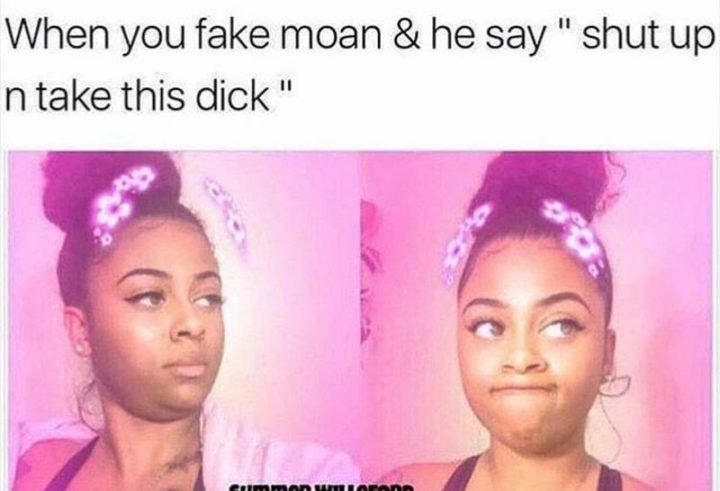 “When you fake moan and he says ‘Shut up n take this [censored].'”