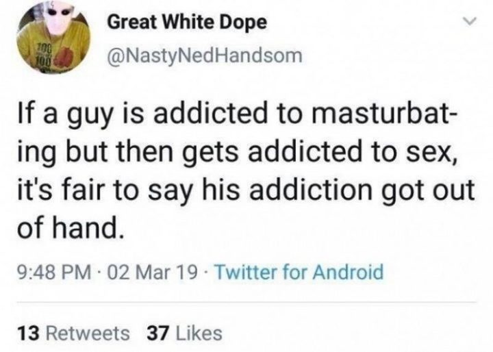 “If a guy is addicted to [censored] but then gets addicted to sex, it’s fair to say his addiction got out of hand.”