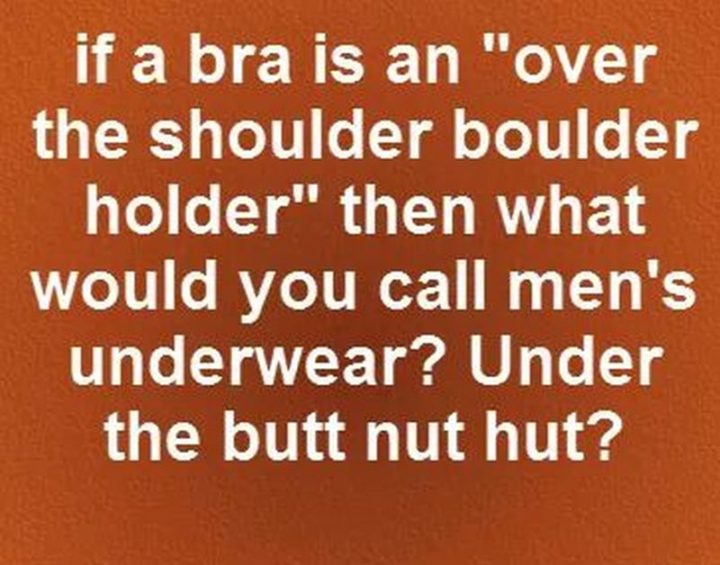 “If a bra is an ‘over the shoulder boulder holder’ then what would you call men’s underwear? Under the butt nut hut?”