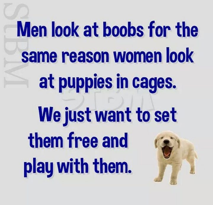 “Men look at [censored] for the same reason women look at puppies in cages. We just want to set them free and play with them.”