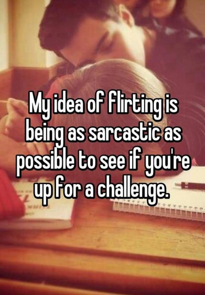 “My idea of flirting is being as sarcastic as possible to see if you’re up for a challenge.”