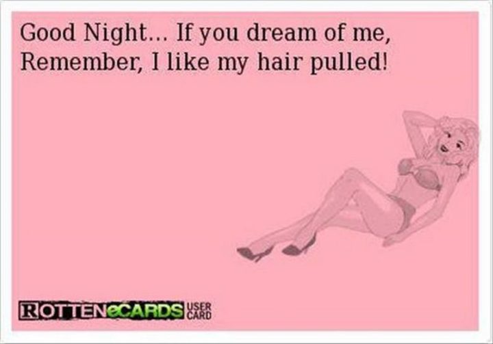 “Good night…If you dream of me, remember, I like my hair pulled!”