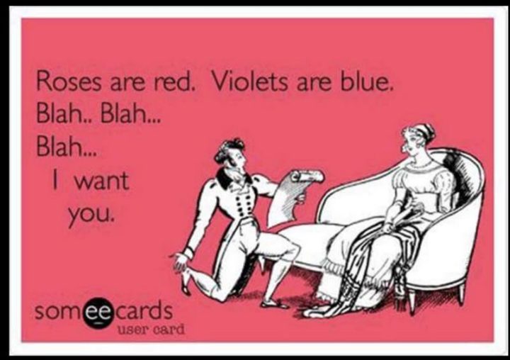 “Roses are red. Violets are blue. Blah…Blah…Blah…I want you.”