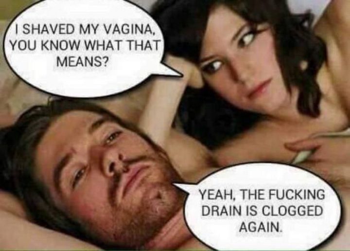 “I shaved my [censored], you know what that means? Yeah, the [censored] drain is clogged again.”