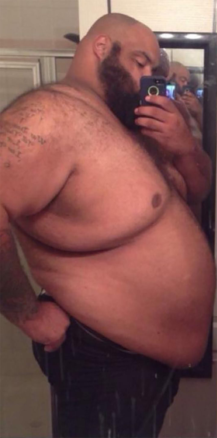 Pasquale Brocco didn’t realize how overweight he became until he looked at his photo. Pat stands at 6’8″ and when he took this photo, he weighed 605 lbs. It was the fuel he needed for positive change.