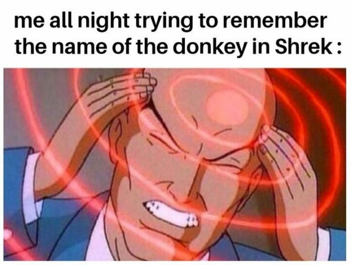 “Me all night trying to remember the name of the donkey in Shrek:”
