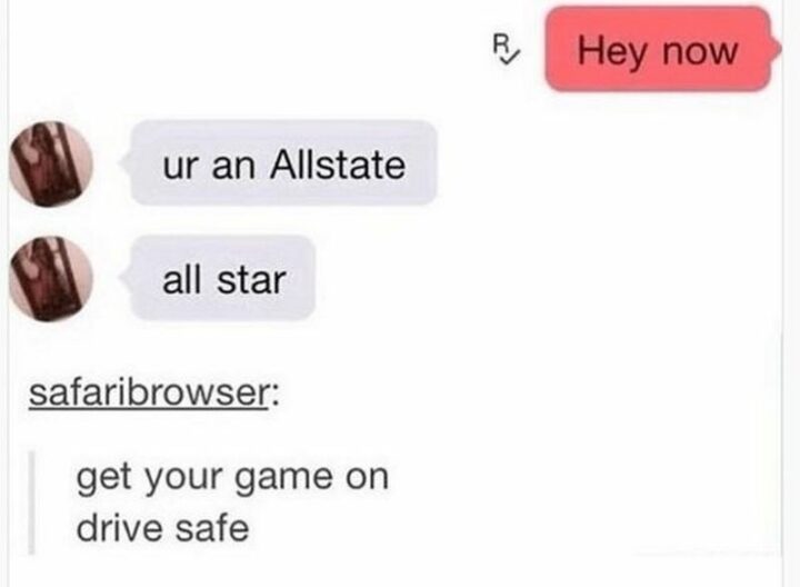 “Hey now. Ur an Allstate. All-star. Get your game on drive safe.”