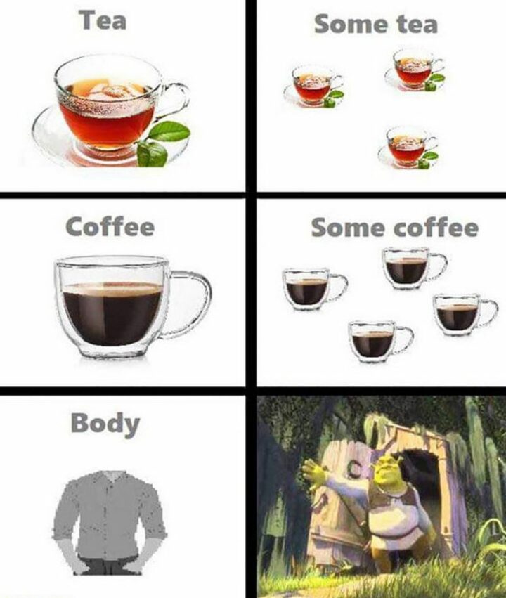 “Tea. Some tea. Coffee. Some coffee. Body.”