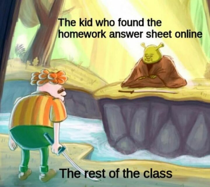 “The kid who found the homework answer sheet online. The rest of the class.”