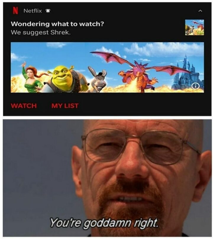 “Wondering what to watch? We suggest Shrek. You’re goddamn right.”