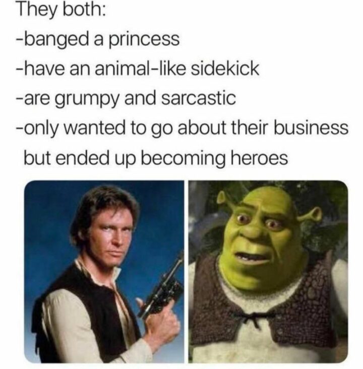 “They both: Banged a princess. Have an animal-like sidekick. Are grumpy and sarcastic. Only wanted to go about their business but ended up becoming heroes.”