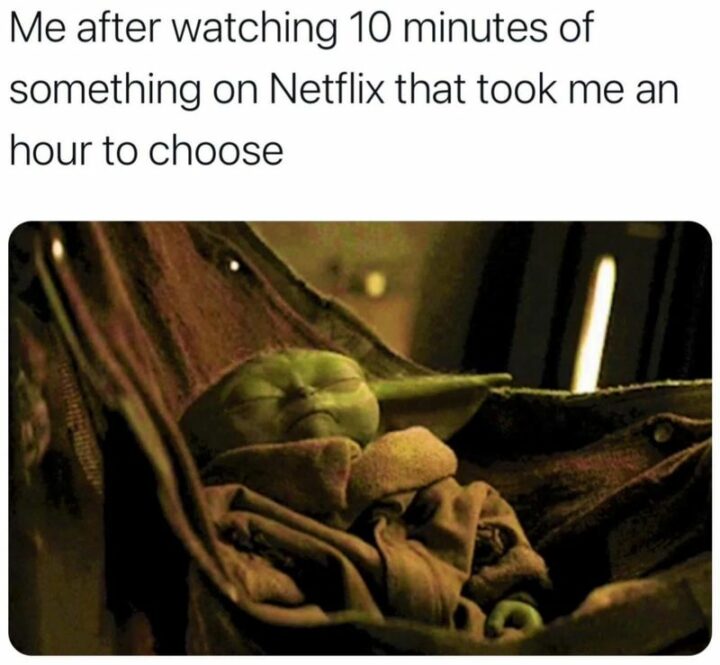 “Me after watching 10 minutes of something on Netflix that took me an hour to choose.”