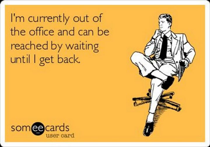 “I’m currently out of the office and can be reached by waiting until I get back.”