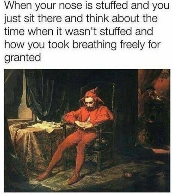 “When your nose is stuffed and you just sit there and think about the time when it wasn’t stuffed and how you took breathing freely for granted.”