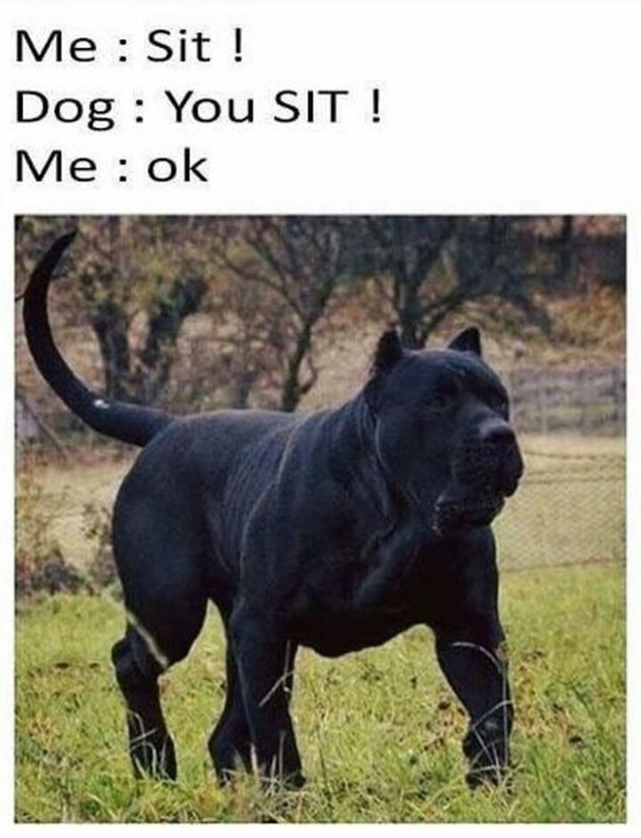 “Me: Sit! Dog: You sit! Me: Ok.”