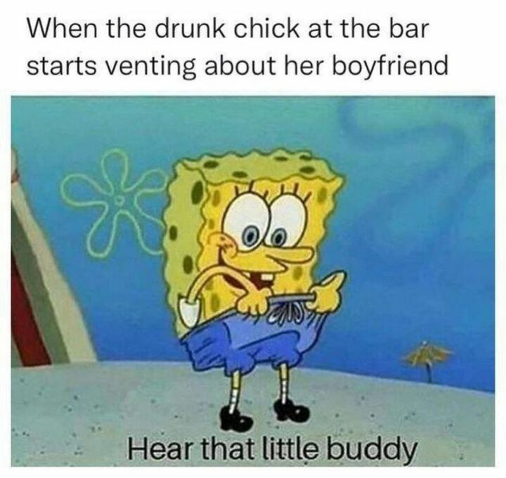 “When the drunk chick at the bar starts venting about her boyfriend: Hear that little buddy.”