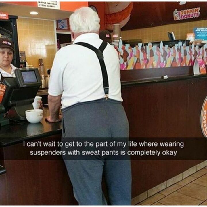 “I can’t wait to get to the part of my life where wearing suspenders with sweatpants is completely okay.”