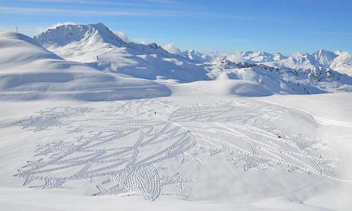 Simon has been creating snow art for over 10 years and he continues to astound. Visit his Facebook page to view some of his latest works of art or order a copy of his book. Please share this incredible snow art created by Simon Beck with your friends and family.