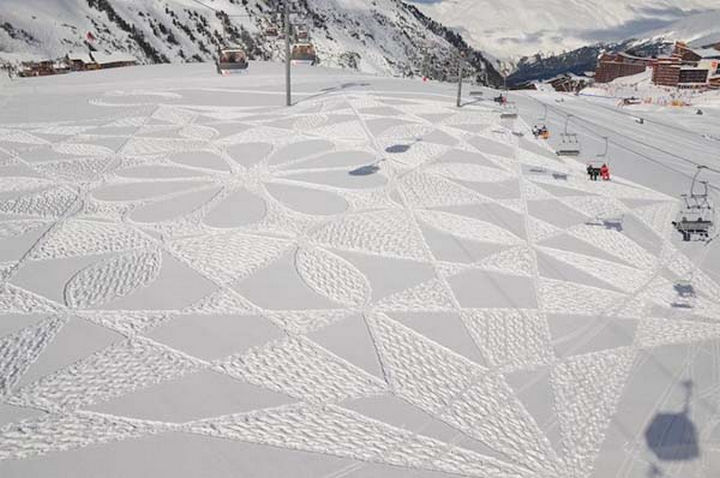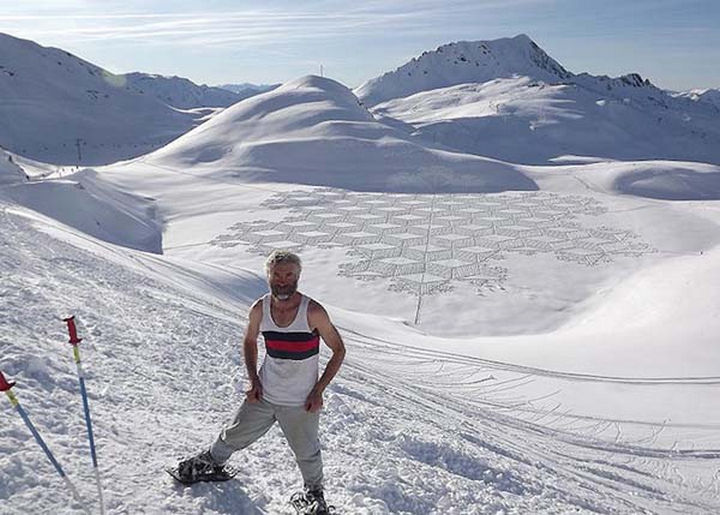 Whether it’s turning a large pile of snow into an epic snow sculpture or making incredible art using snow as your canvas, there are talented people who turn ordinary snow into incredible works of art. Simon Beck is an artist but he doesn’t use paint. Instead, he uses his creativity, his feet, and a field full of snow.
