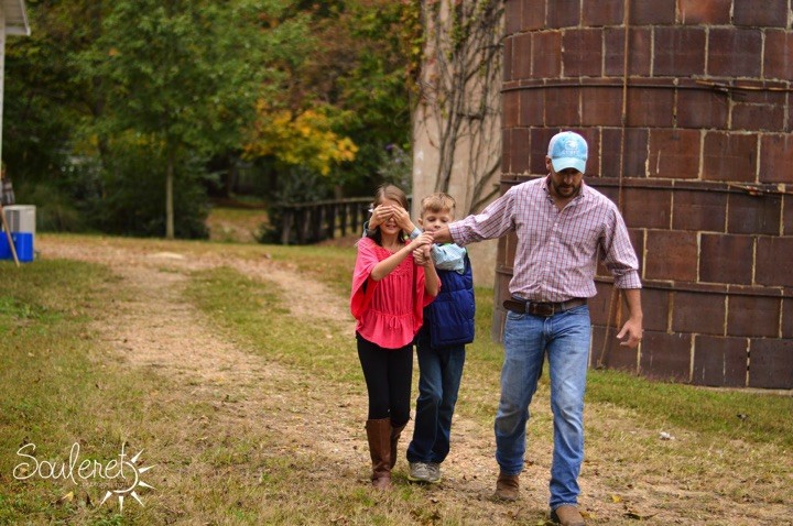 His son covered her eyes and they led her to the perfect spot to pop the question.